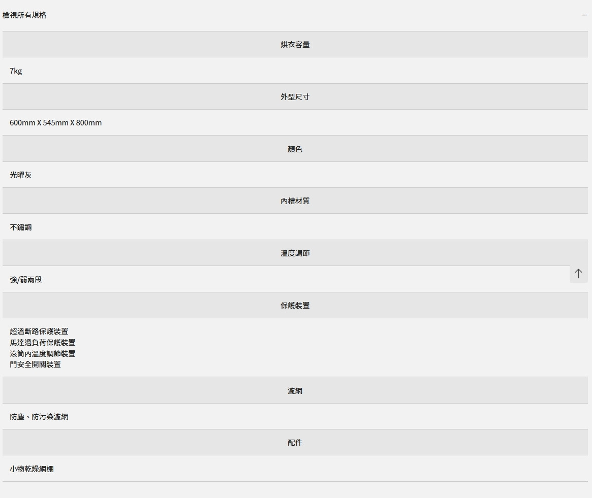 ● 烘衣容量:7kg