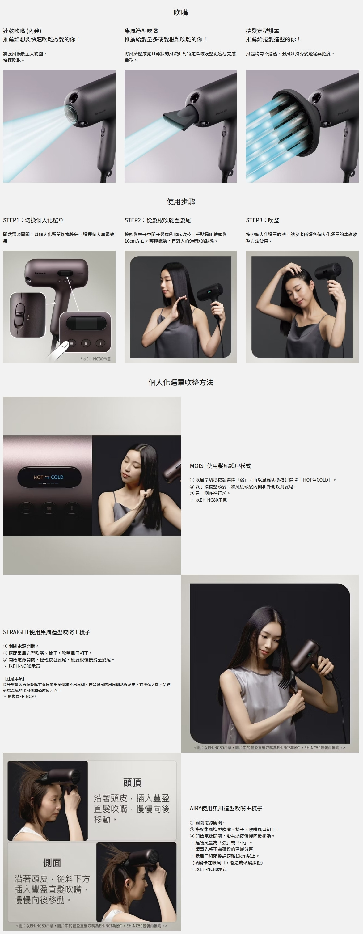 ● 速乾吹嘴+集風造型吹嘴+捲髮定型烘罩