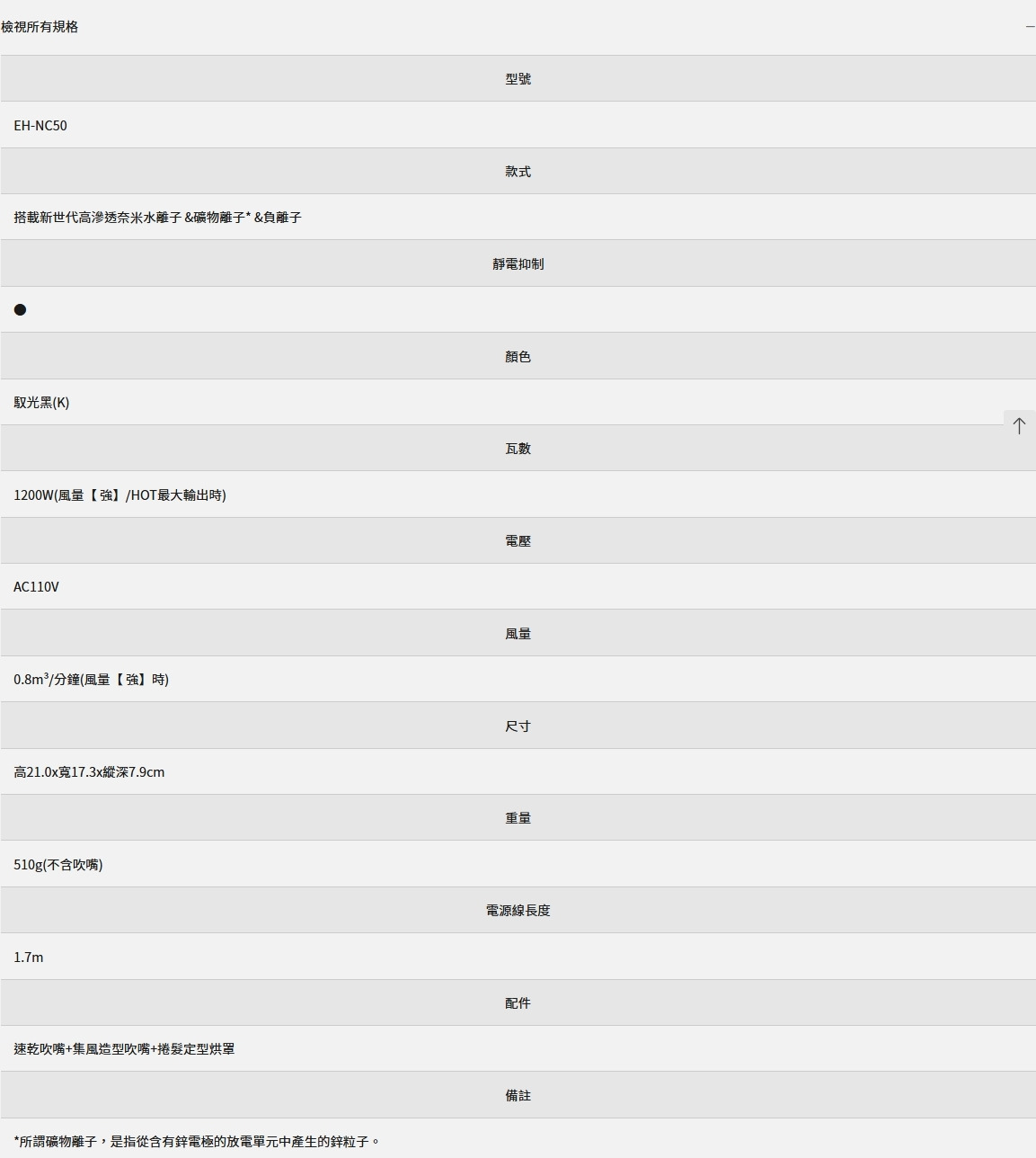 Panasonic 國際牌 奈米水離子吹風機 EH-NC50