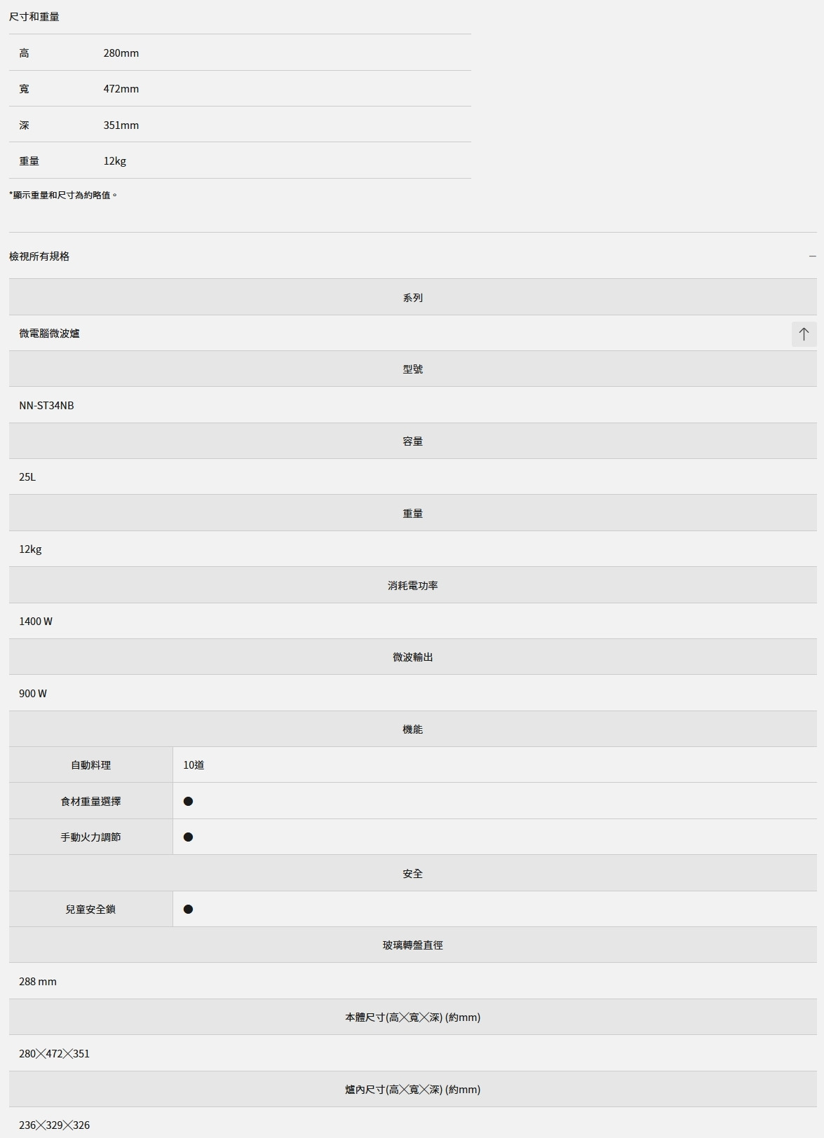 Panasonic 國際牌 微電腦微波爐 NN-ST34NB