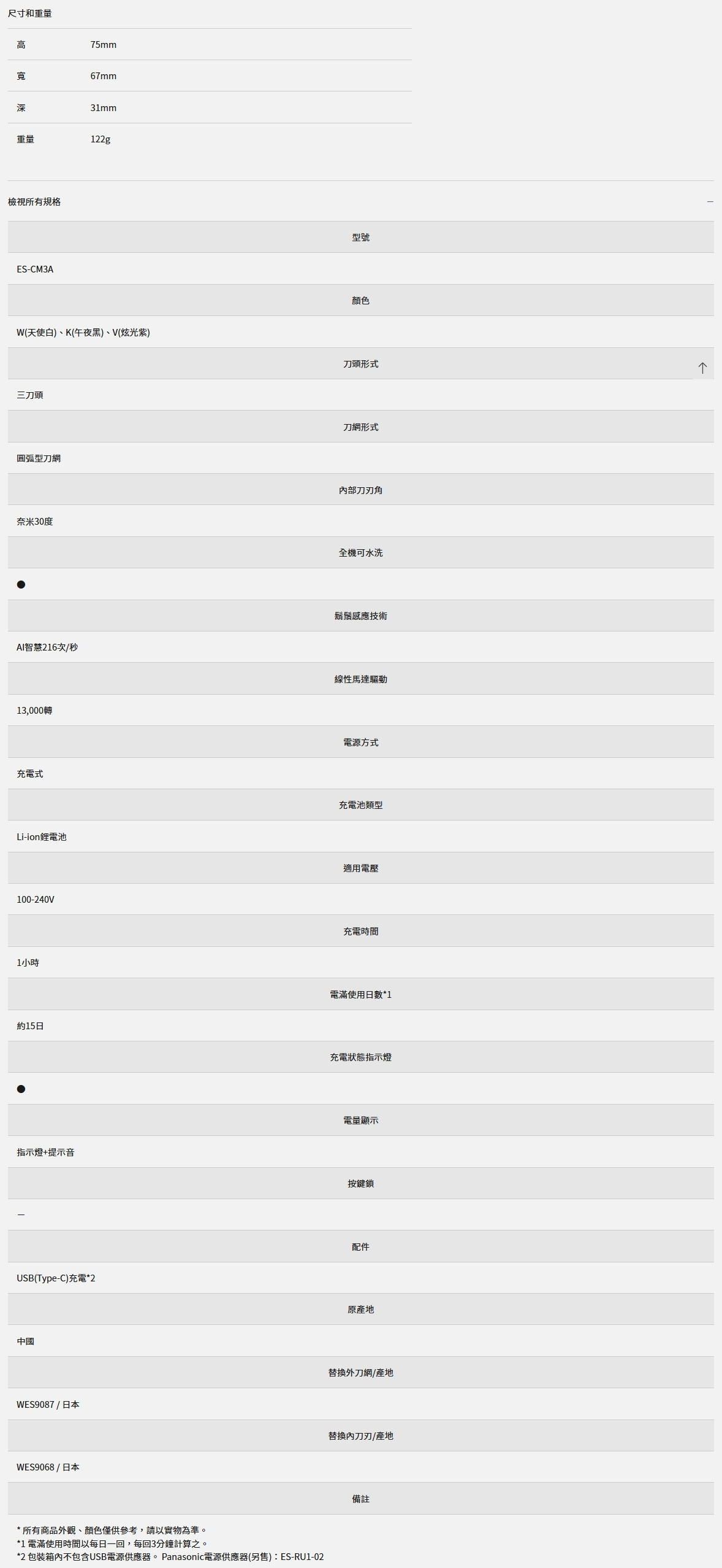 Panasonic 國際牌 掌上型3枚刃電鬍刀 ES-CM3A