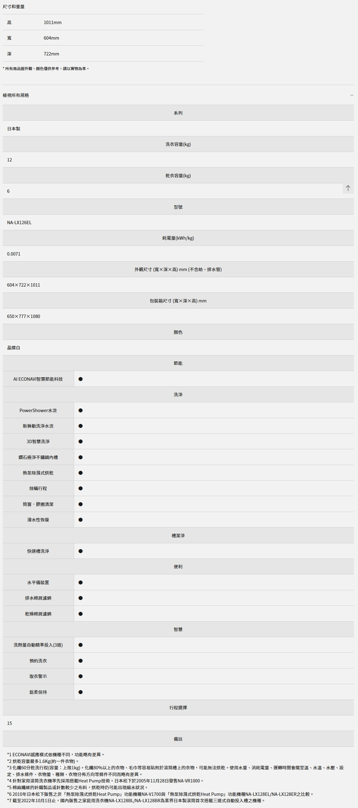 Panasonic 國際牌 日本製 洗烘脫滾筒洗衣機 NA-LX126EL