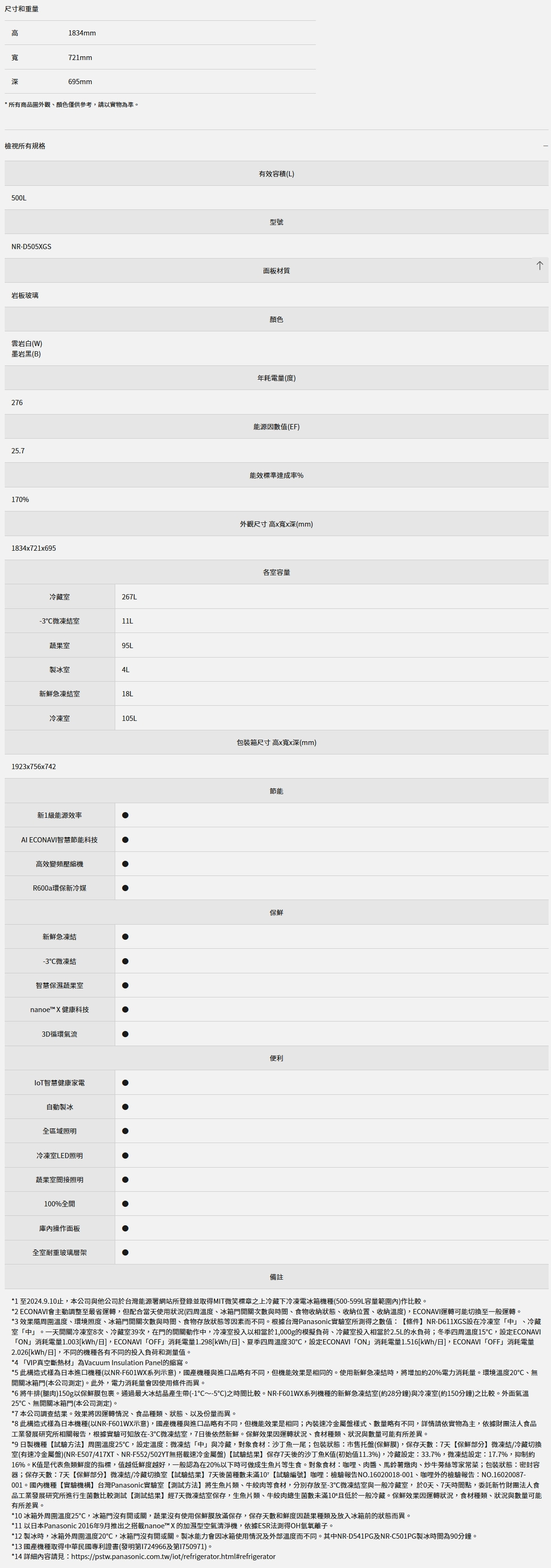 Panasonic 國際牌 日系上質系列 無邊框岩板玻璃4門電冰箱 NR-D505XGS