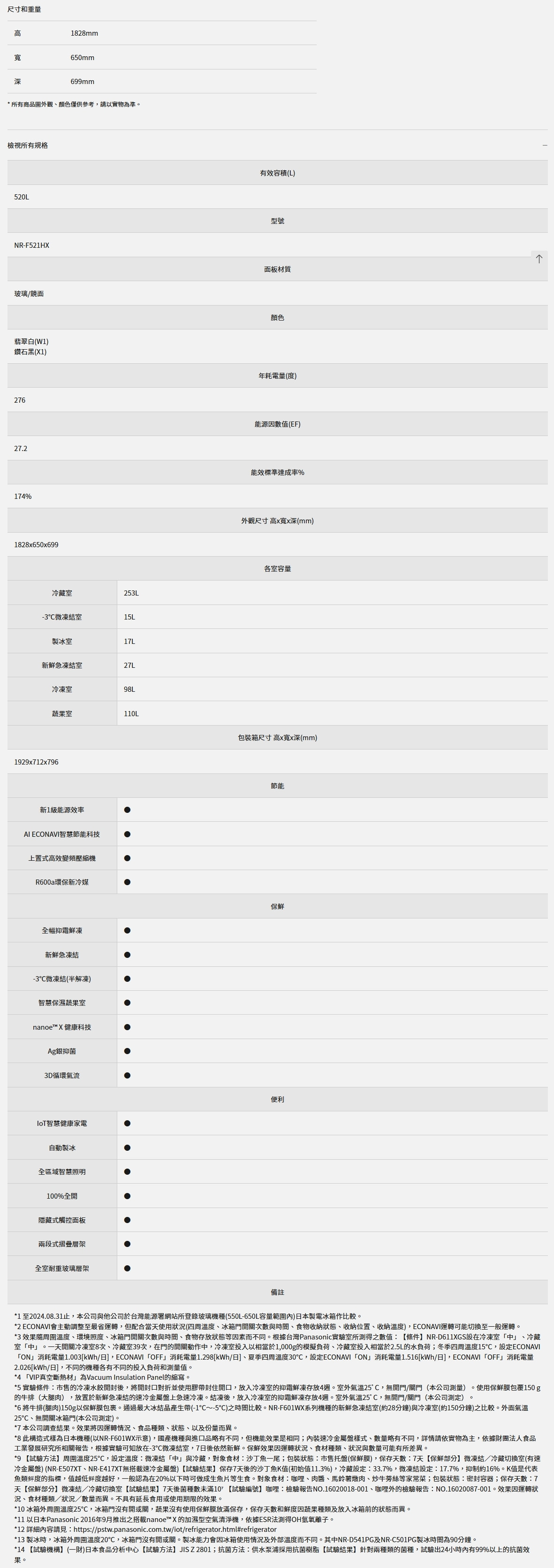 Panasonic 國際牌 日系上質系列 無邊框鏡面/玻璃6門電冰箱 NR-F521HX