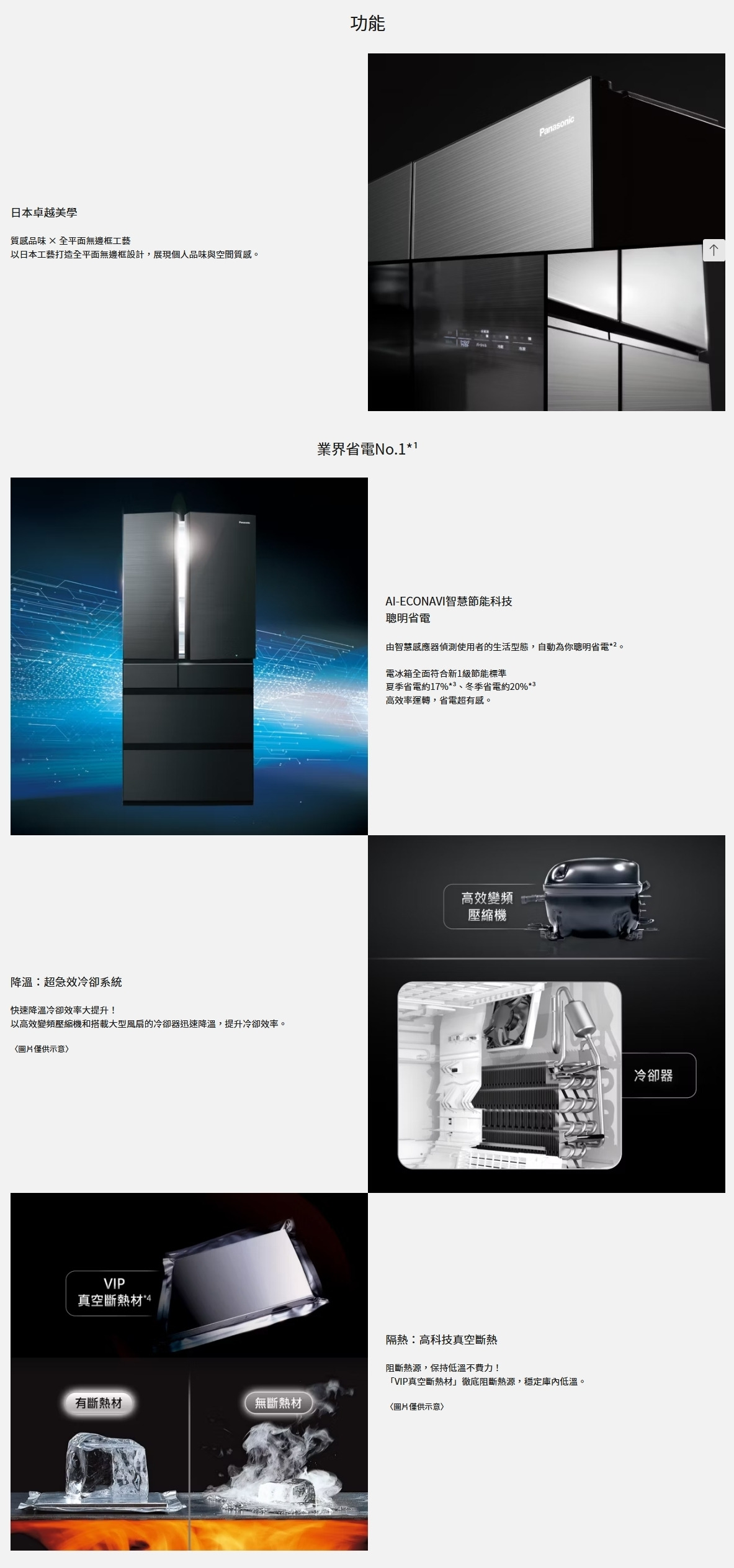Panasonic 國際牌 日系上質系列 無邊框鏡面/玻璃6門電冰箱 NR-F601WX