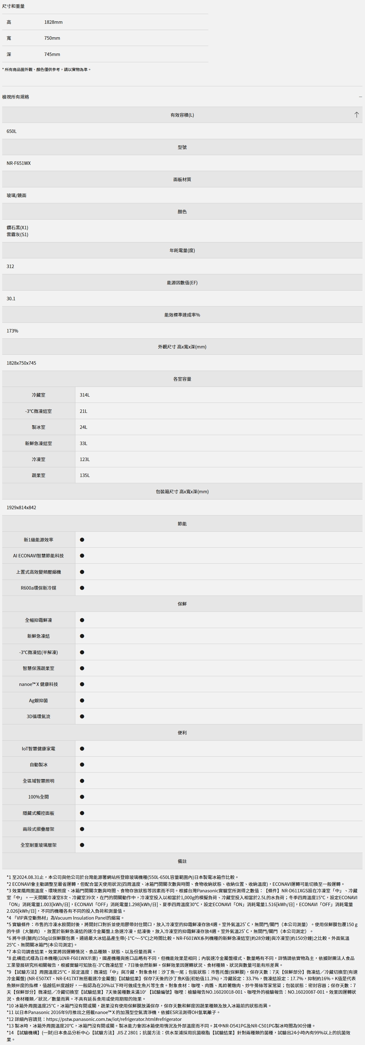 Panasonic 國際牌 日系上質系列 無邊框鏡面/玻璃6門電冰箱 NR-F651WX