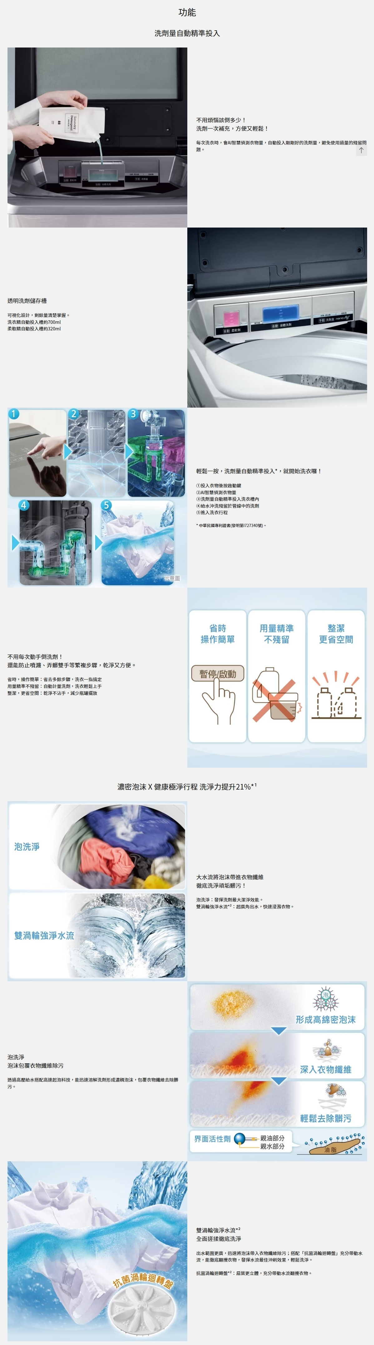 • 洗劑量自動精準投入