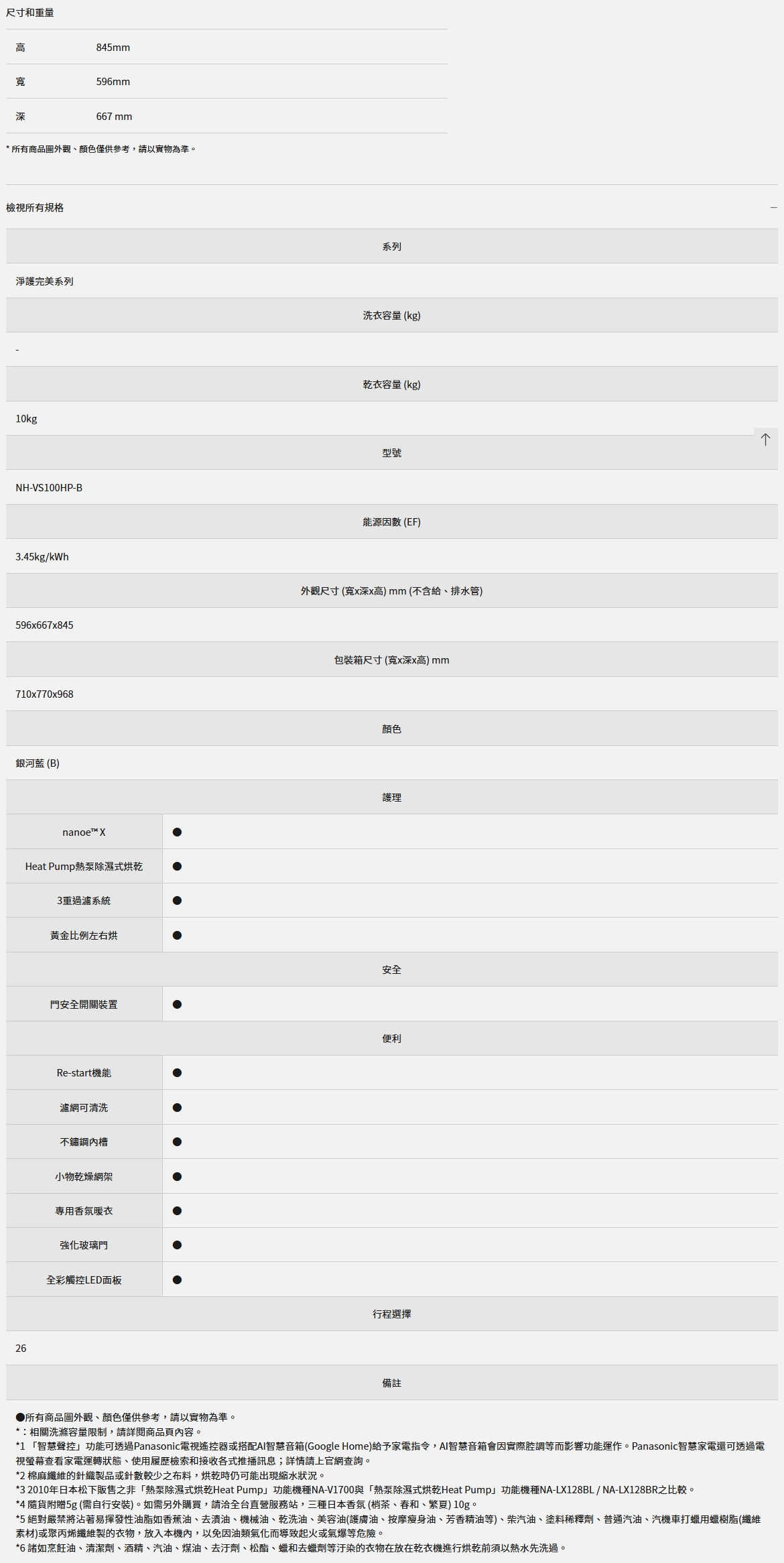 Panasonic 國際牌 淨護完美 熱泵除濕式乾衣機 NH-VS100HP-B