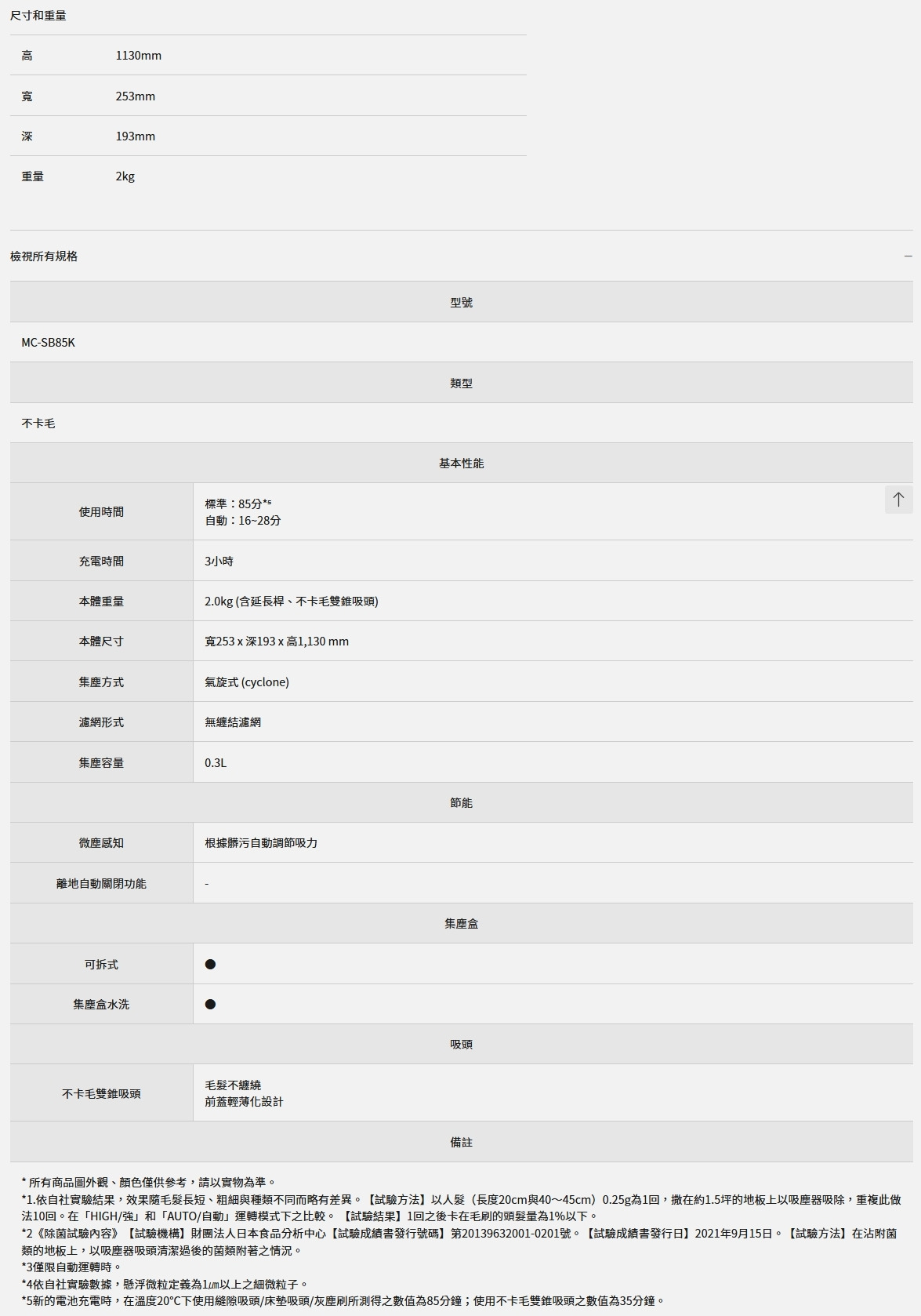 Panasonic 國際牌 無線吸塵器 MC-SB85K