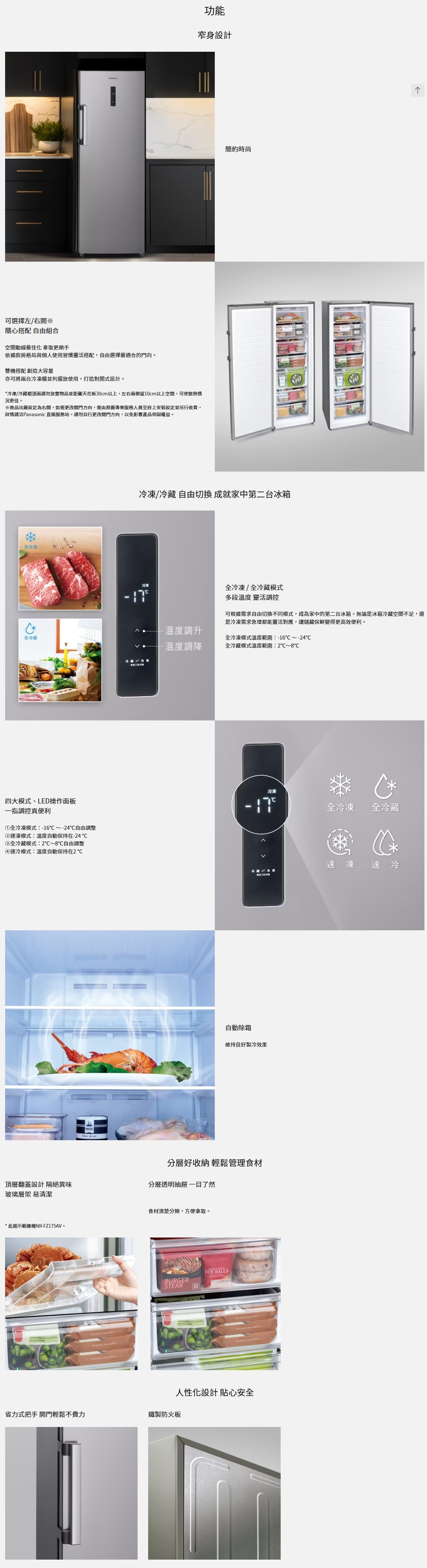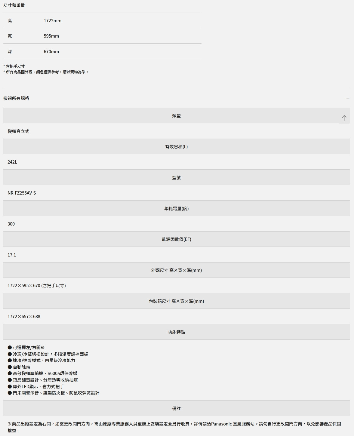 Panasonic 國際牌 直立式冷凍/冷藏櫃 NR-FZ255AV-S