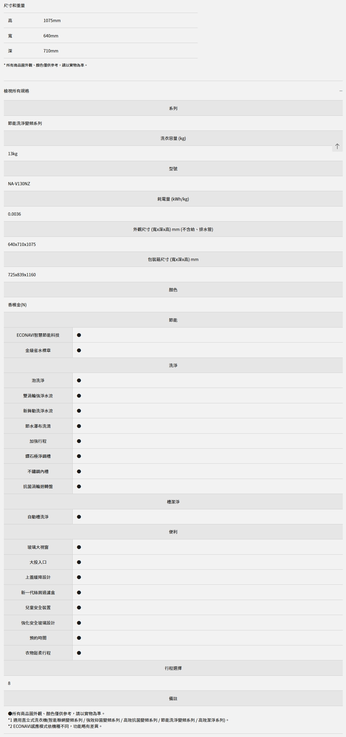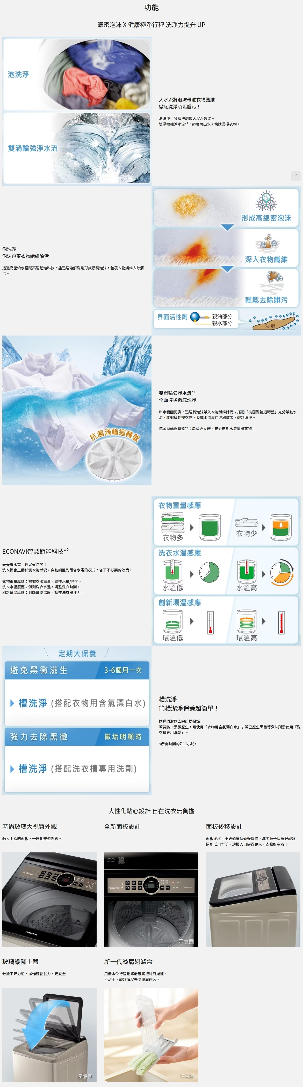 Panasonic 國際牌 節能洗淨變頻直立式洗衣機 NA-V130NZ