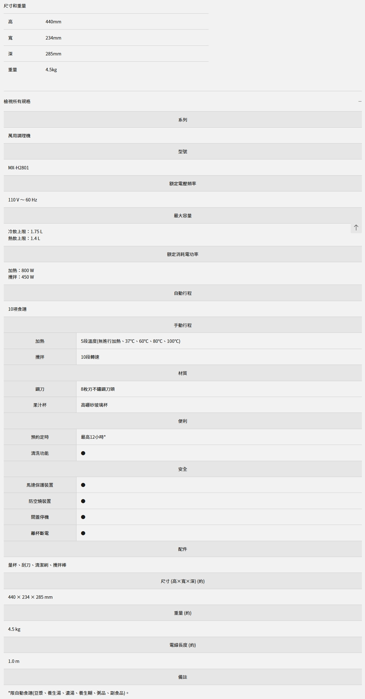 Panasonic 國際牌 萬用調理機 MX-H2801