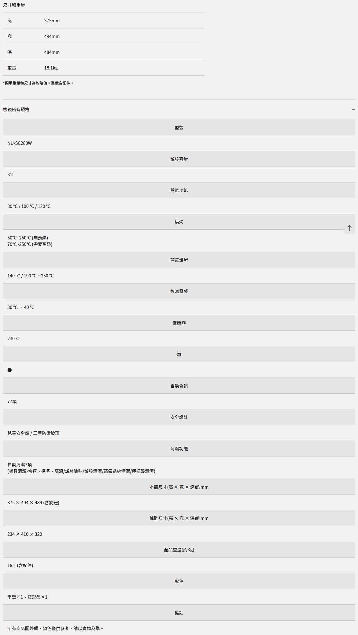 Panasonic 國際牌 蒸氣烘烤爐 NU-SC280W