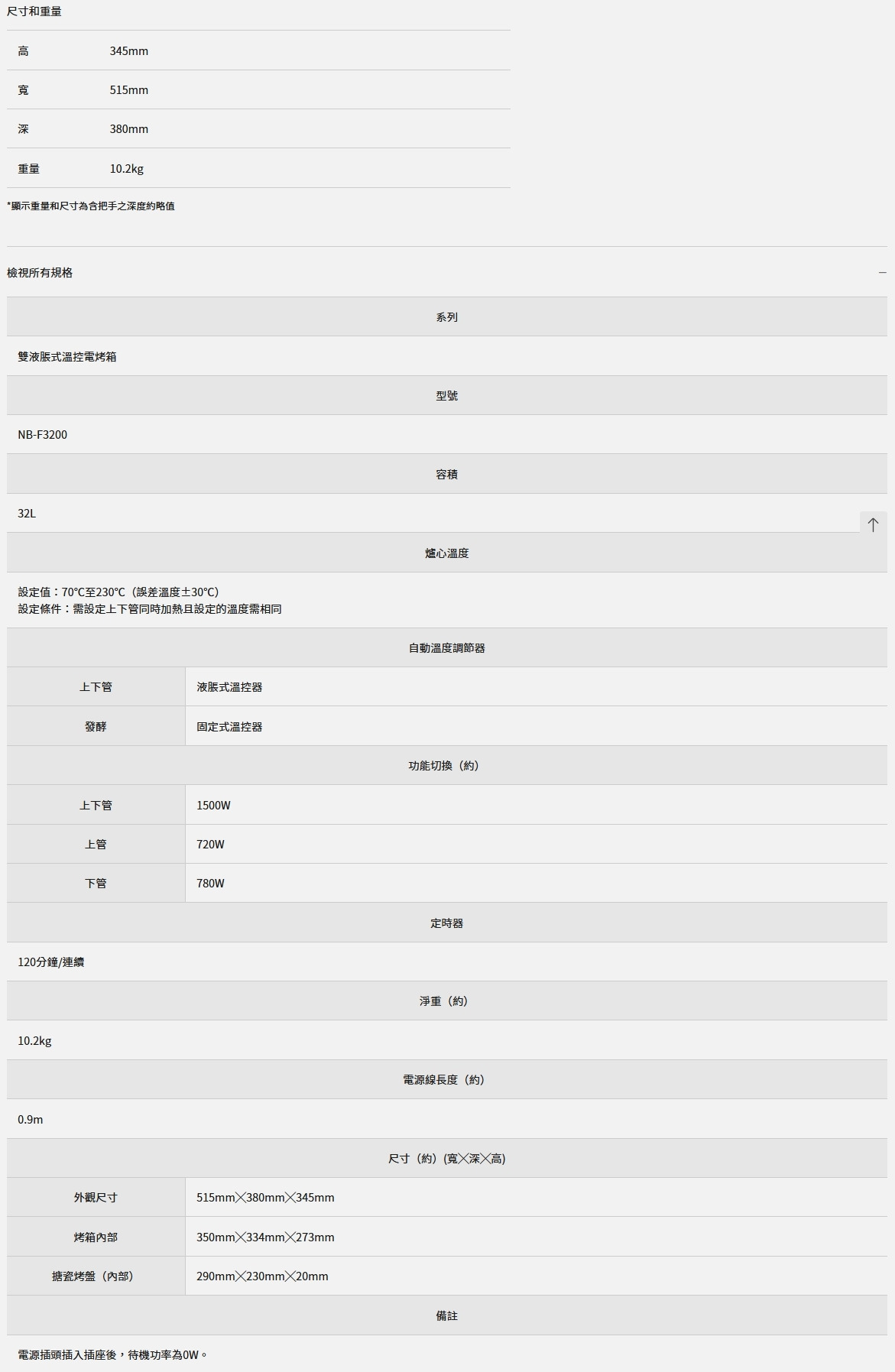 Panasonic 國際牌 雙液脹式溫控電烤箱 NB-F3200