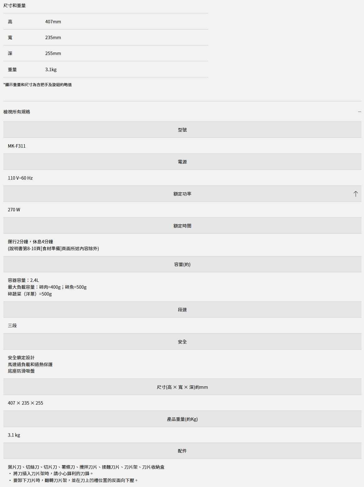 Panasonic 國際牌 食物處理機 MK-F311