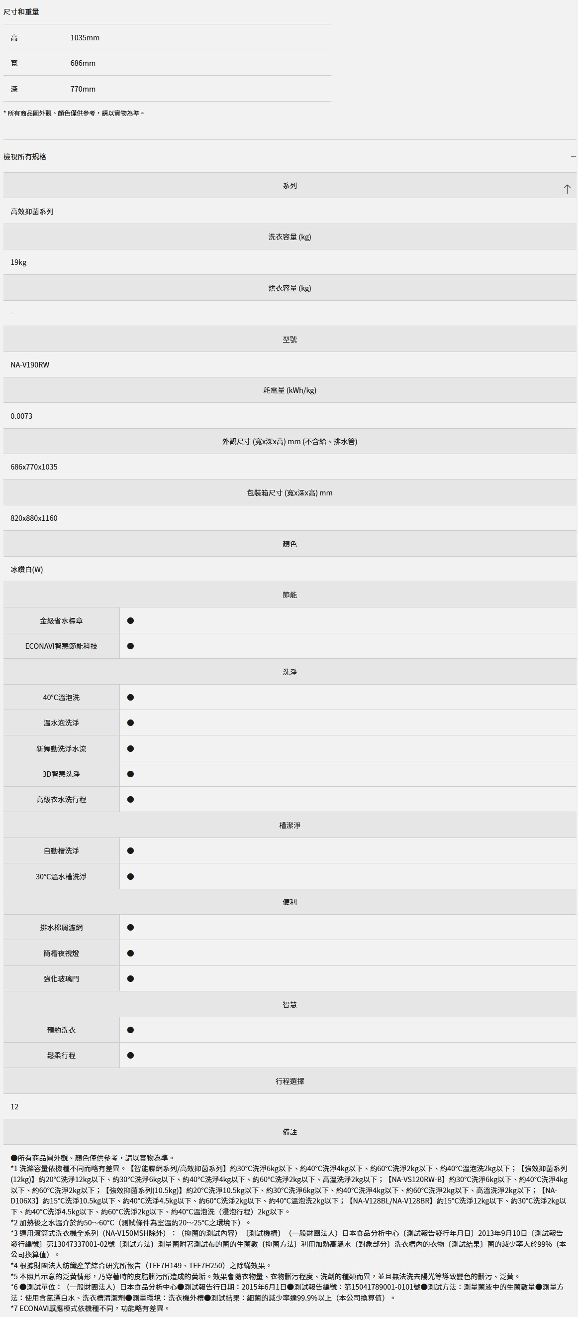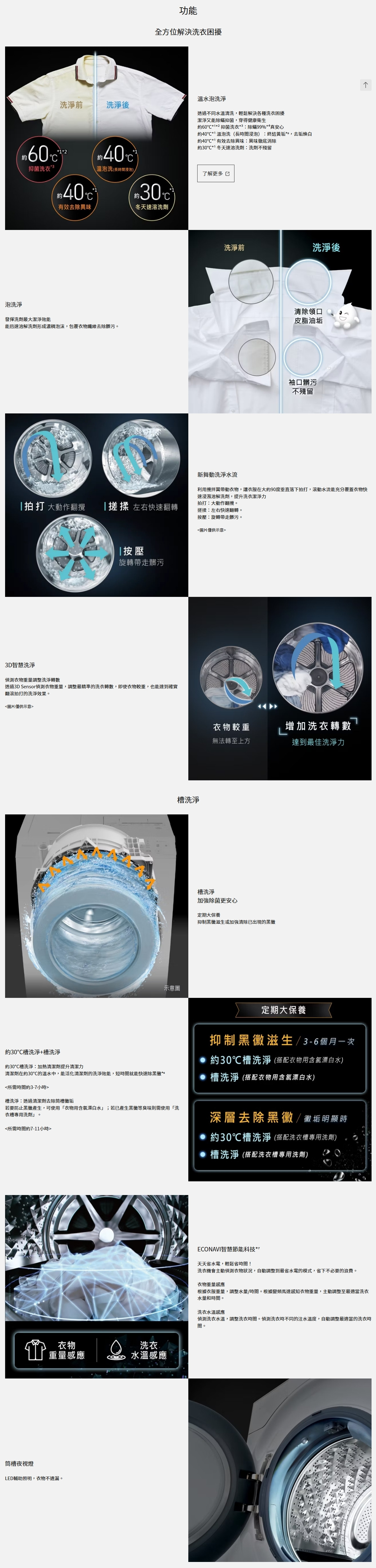 Panasonic 國際牌 高效抑菌系列 溫水滾筒洗衣機 NA-V190RW