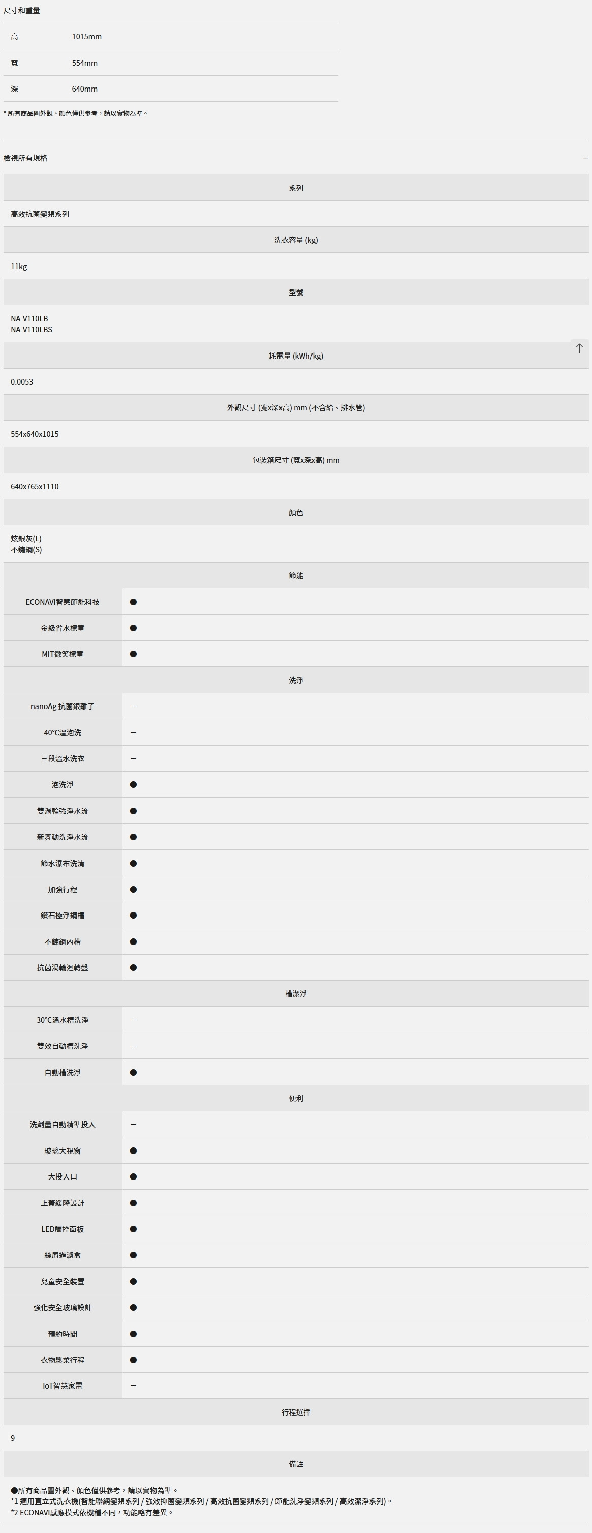Panasonic 國際牌 高效抗菌變頻直立式洗衣機 NA-V110LB