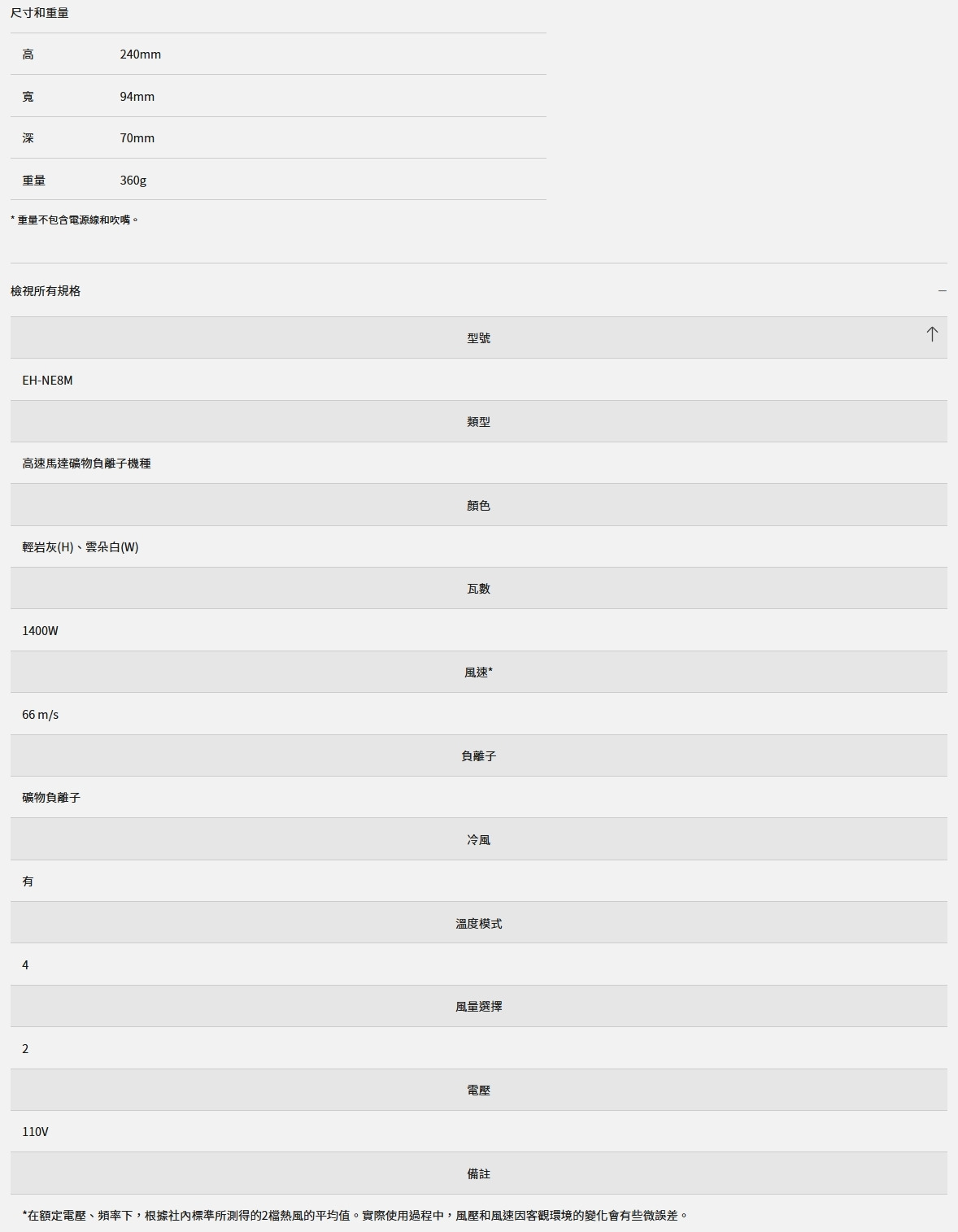Panasonic 國際牌 高速馬達礦物負離子吹風機 EH-NE8M
