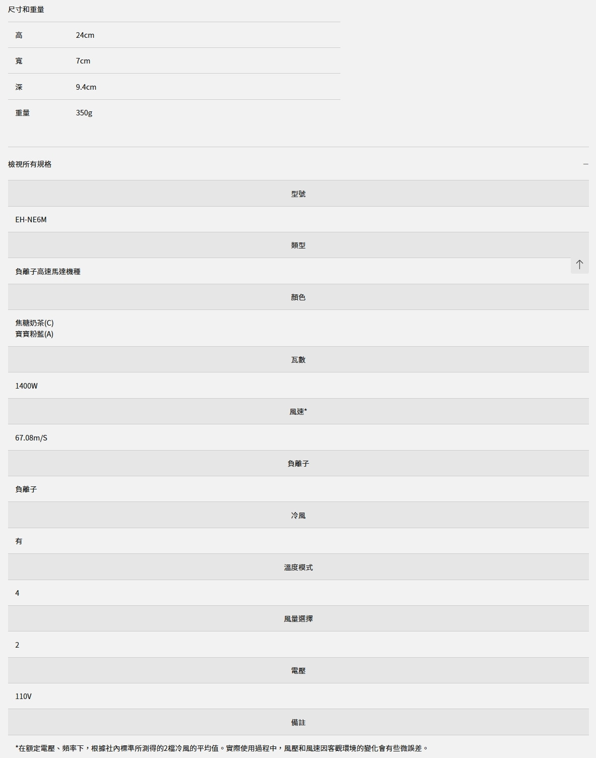 Panasonic 國際牌 高速馬達負離子吹風機EH-NE6M