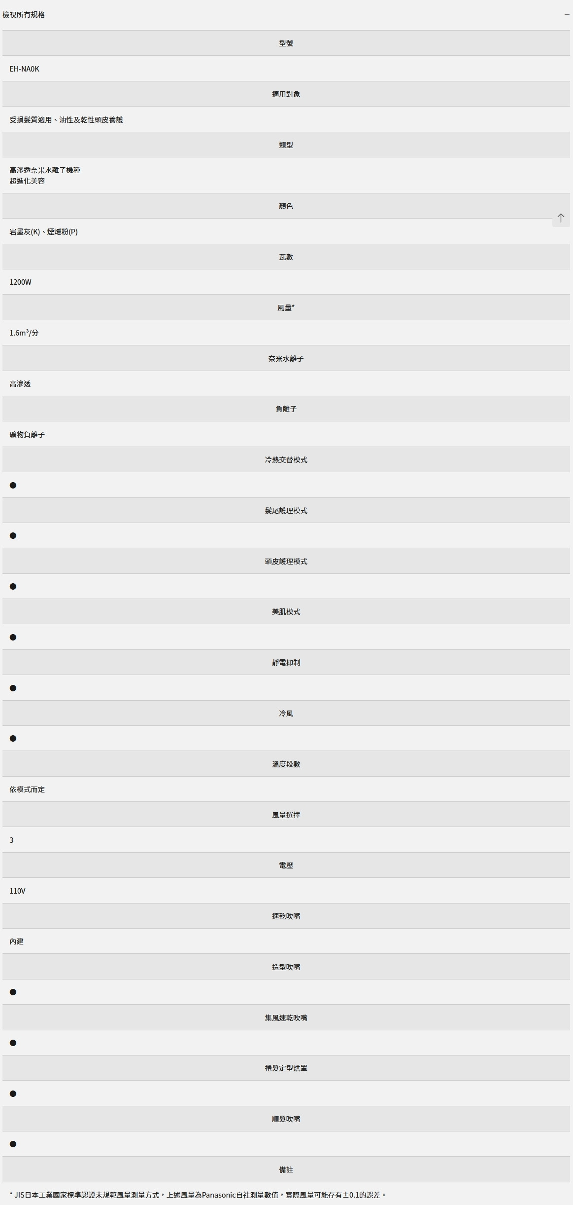 Panasonic 國際牌 nanocare 奈米水離子吹風機EH-NA0K