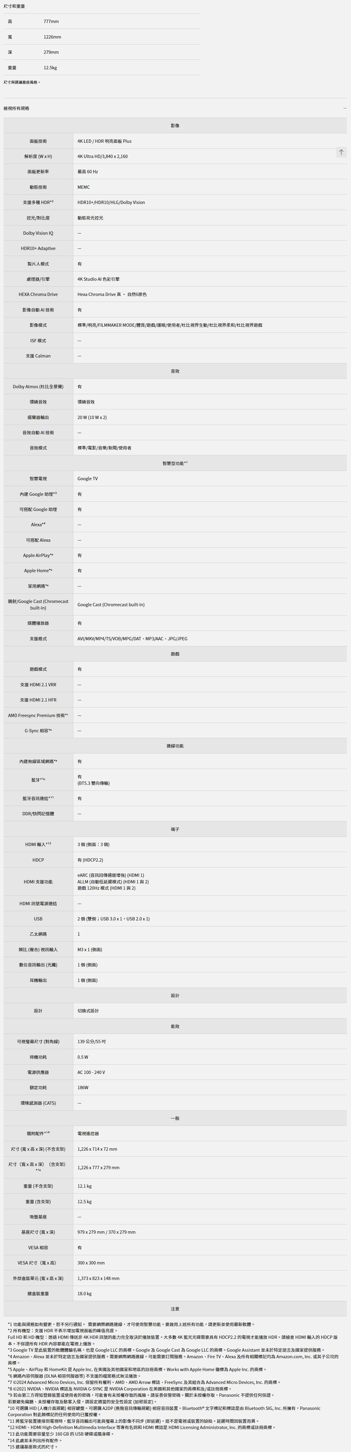 Panasonic 國際牌 TN-55W80BGT 55 英吋、LED、4K HDR 智慧顯示器