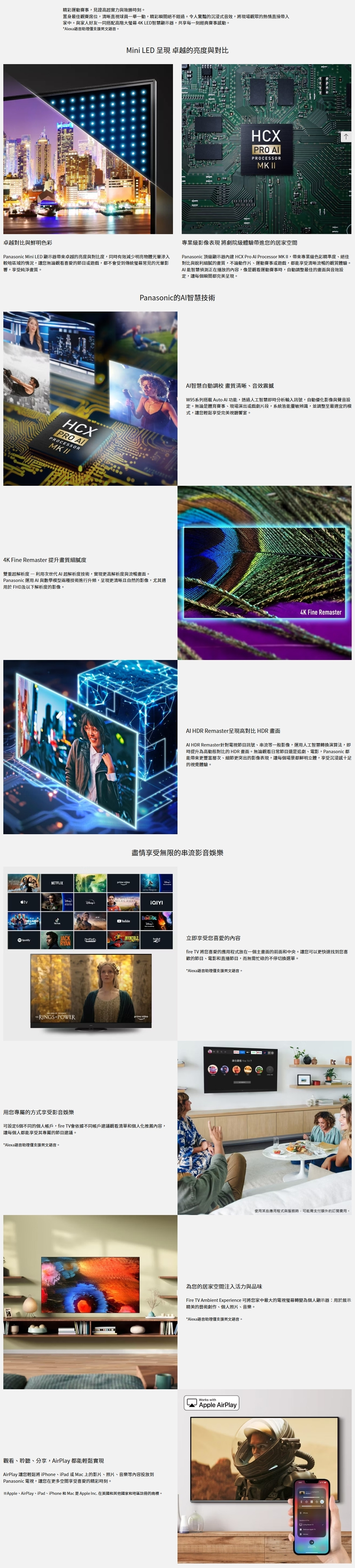 Panasonic 國際牌 TV-65W95BGT 65 吋, Mini LED, 4K HDR 智慧顯示器